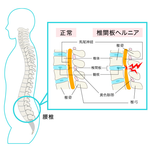 などによって刺激を受けると神経症状(痛み、しびれ)が出ます。