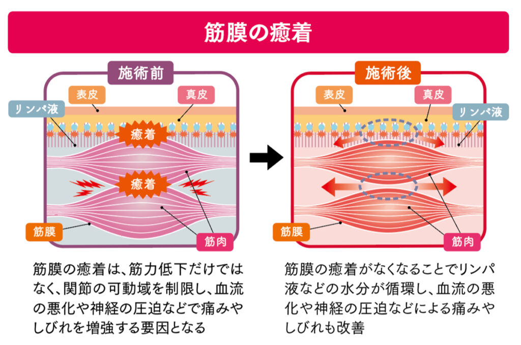 筋肉を包む「筋膜」が硬くなると、肩だけでなく背中・首・腕まで影響します。